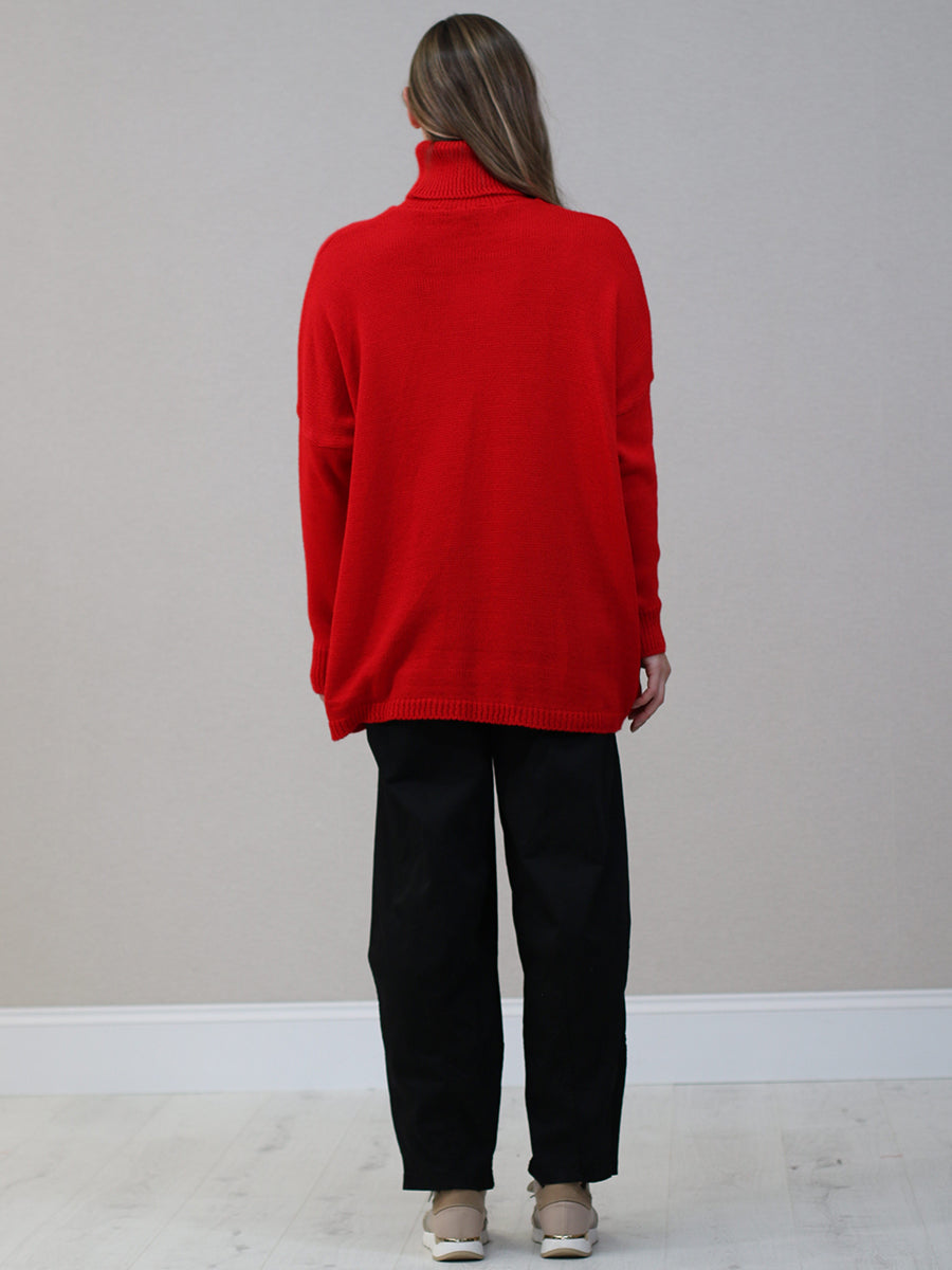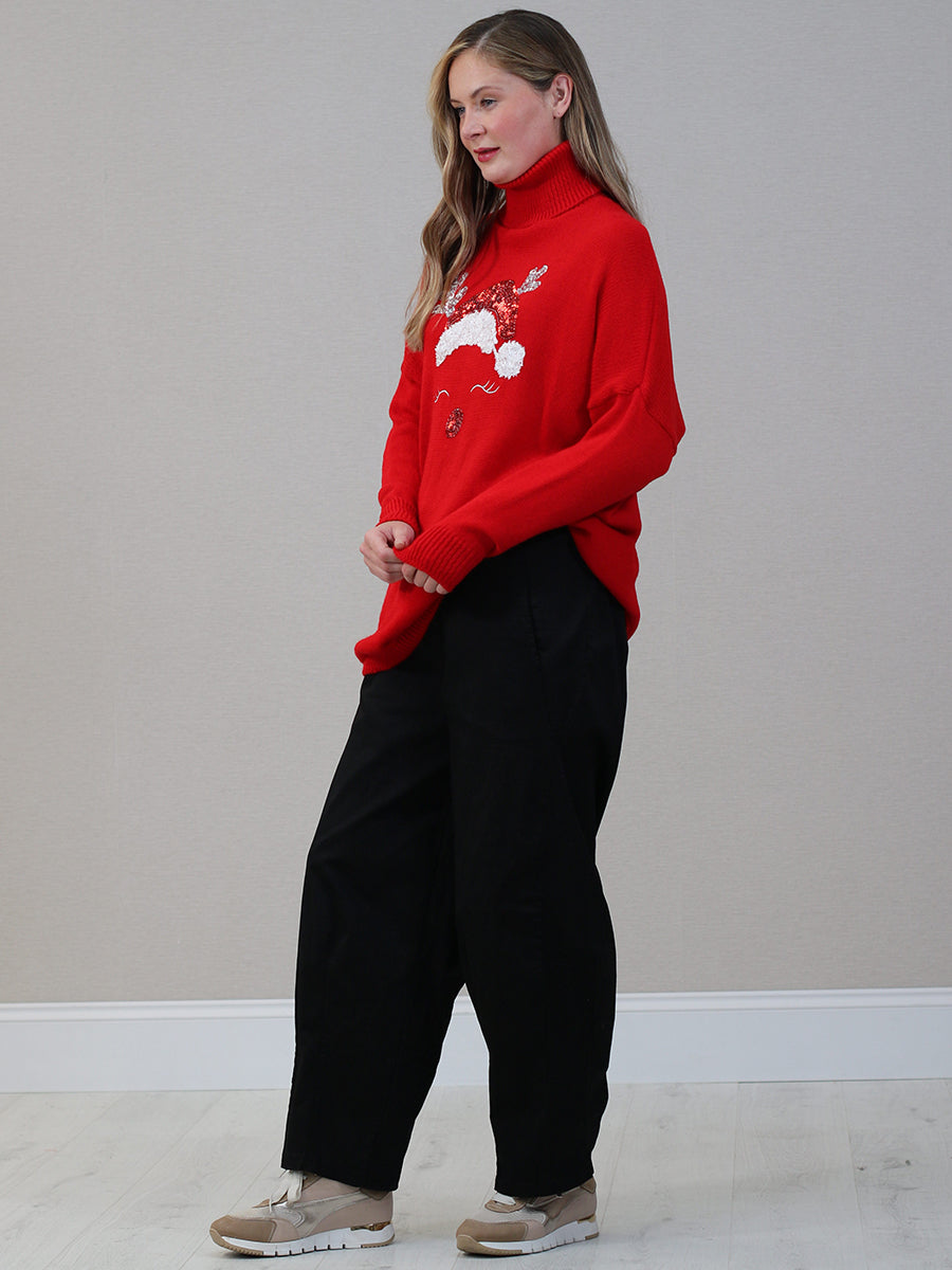 This bold Italian jumper will help you to celebrate the holiday spirit! The sequined reindeer face with its lovely Santa hat brightens your winter days. Its polo neck and baggy fit keep you warm and cosy for laid-back events or festive celebrations. Add it to your wardrobe and let the holiday mood radiate!